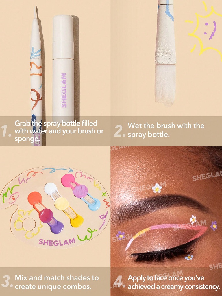 پالت سایه آبرنگی شیگلم یک پالت سایه رنگارنگ و متفاوت و یک تجربهی هنری واقعی برای دوستداران میکاپ جسور و خلاقانه است. برخلاف سایههای معمول، رنگها همه خشک و جامد بوده و تنها با تماس با آب فعال میشوند و برای کشیدن خطوط رنگی، گرافیکآرت، خط چشم رنگی یا سایههای دقیق با فرم خاص بسیار مناسب است.